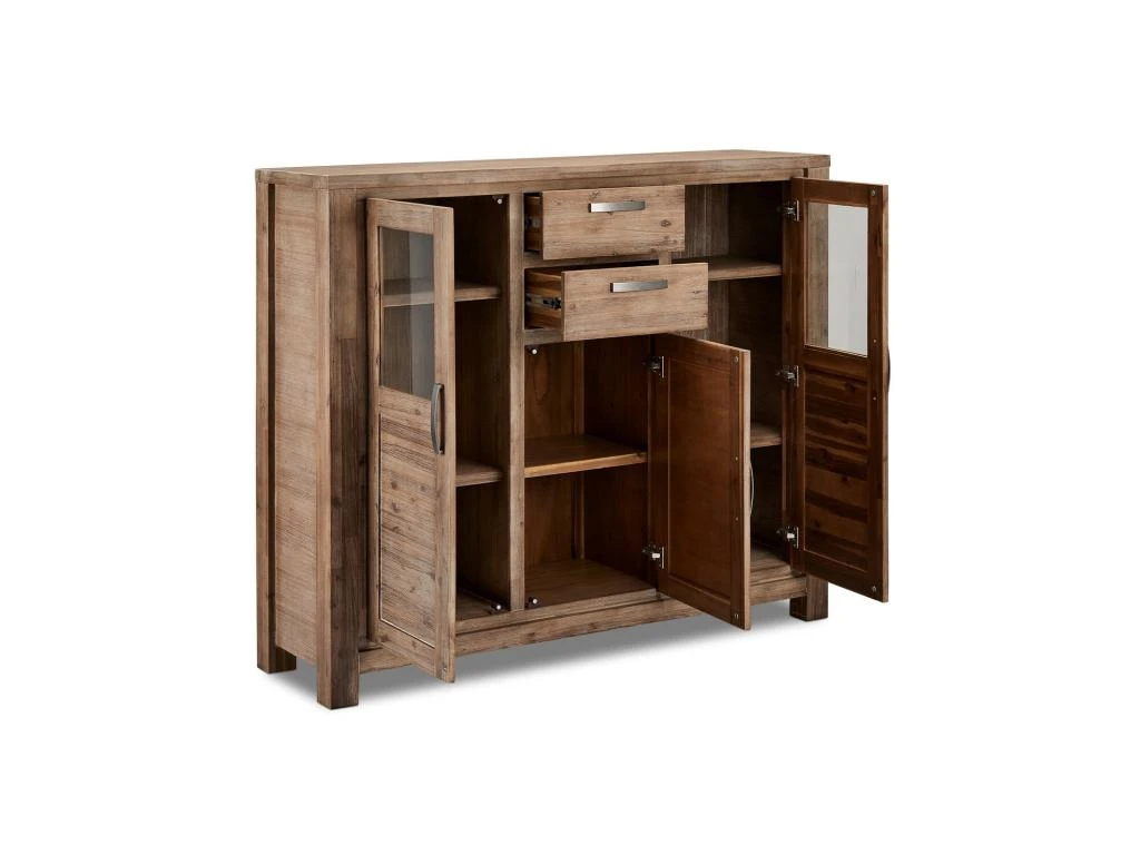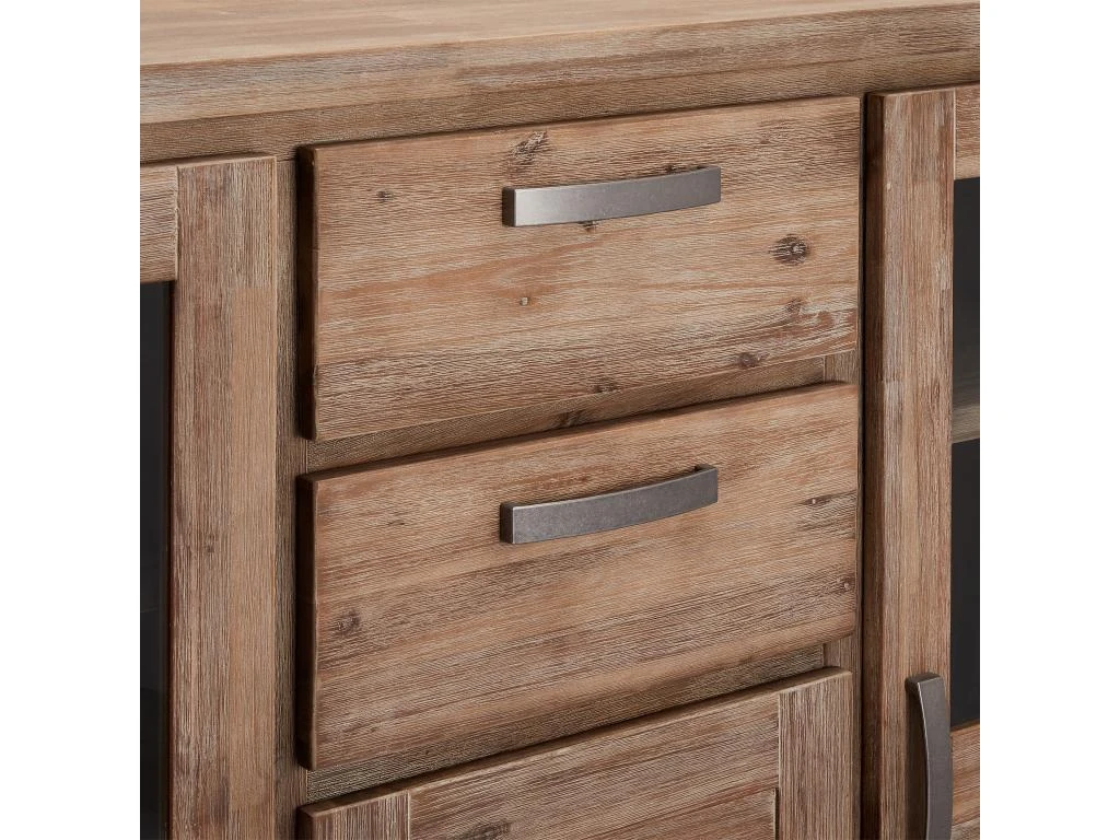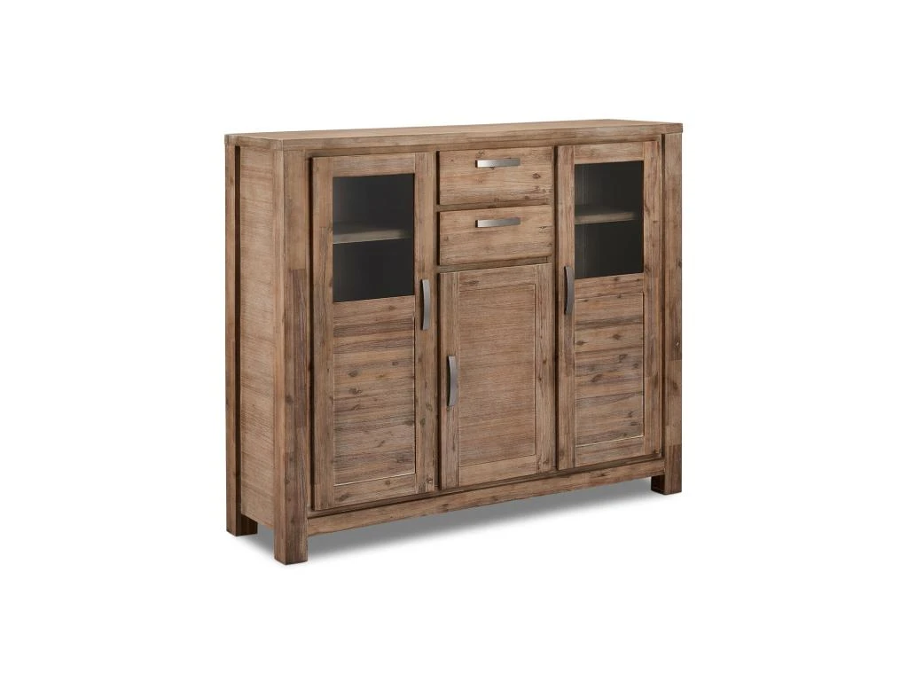 Alana Vitrine avec 3 portes et 2 tiroirs, en bois d’acacia teinté brun, livrée prête à l’emploi. Obtenez des meubles de bonne qualité, confortables, conçus dans un design élégant et moderne. Nos meubles sont vendus à des prix vraiment très attractifs et compétitifs. Créez un intérieur qui vous ressemble, en créant un style qui vous est propre grâce à de nouveaux meubles. Combinez vos meubles avec d’autres éléments et accessoires pour créer une athmosphère chic et à la mode. Soyez toujours au goût du jour en matière d’habitat, et suivez les dernières tendances telles que présentées dans les revues et les magazines. Chez nous, vous trouverez des modèles de meubles et de décoration d’intérieur absolument uniques, chics et ultra confortables. Tous nos meubles offrent un design tendance.