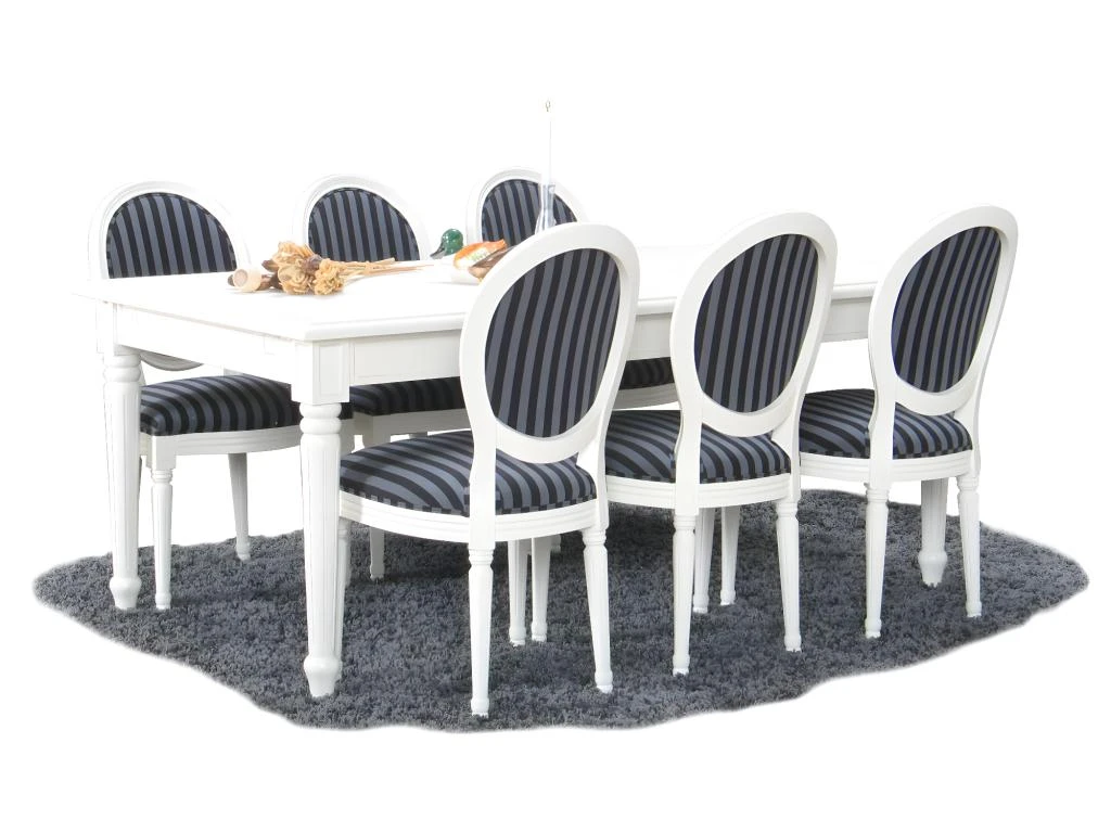 MarinaBLBL Ensemble Table, Table Noir Et 6 Polar Chaises Velours Gris.