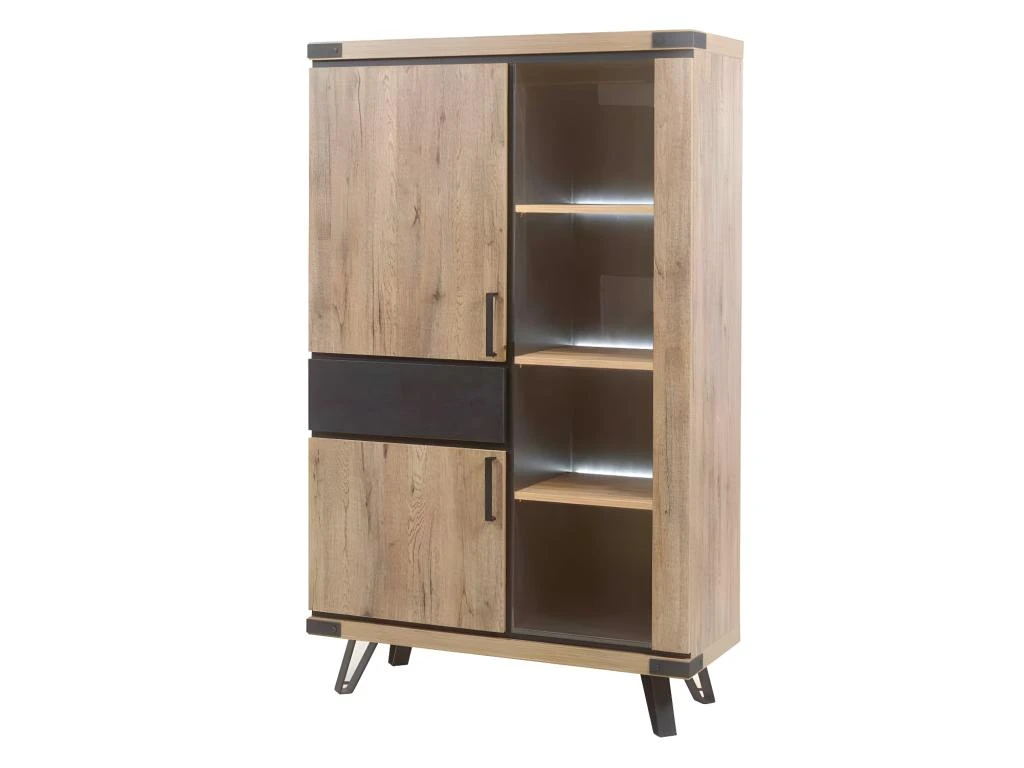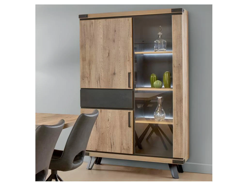Mariant une finition bois de Chêne teinte miel au rendu plus vrai que nature et des éléments façon métal patiné, cette très belle armoire de salon ne manquera pas d’apporter de la chaleur dans votre pièce tout en mettant en avant un design au goût du jour.