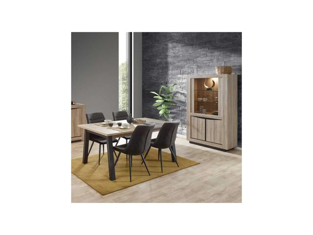 Mettant en avant un revêtement Chêne naturel au veinage plus vrai que nature et des éléments décor béton ciré au rendu très probant cette belle et majestueuse vitrine promet un fort impact visuel dans votre coin repas ou au salon.