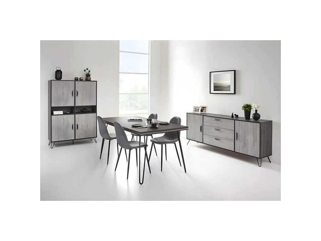 Structure en panneaux de particules, décor chêne cendré. Piètement en métal noir.