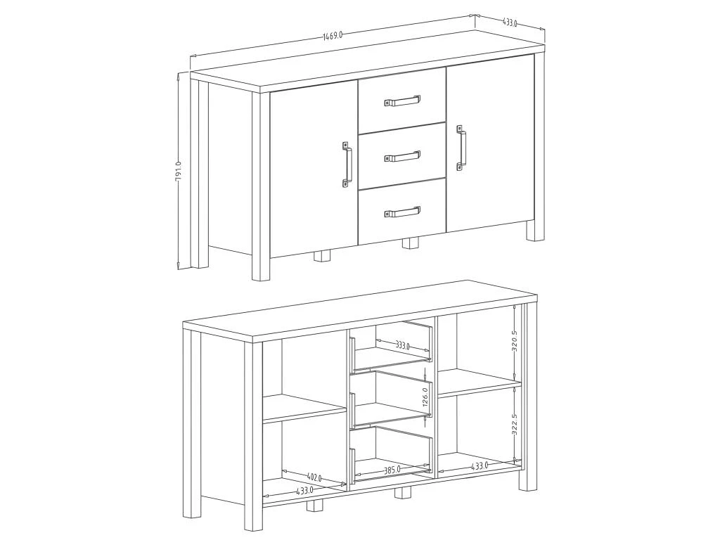– CARACTÉRISTIQUES : Buffet avec 2 portes et 3 tiroirs.