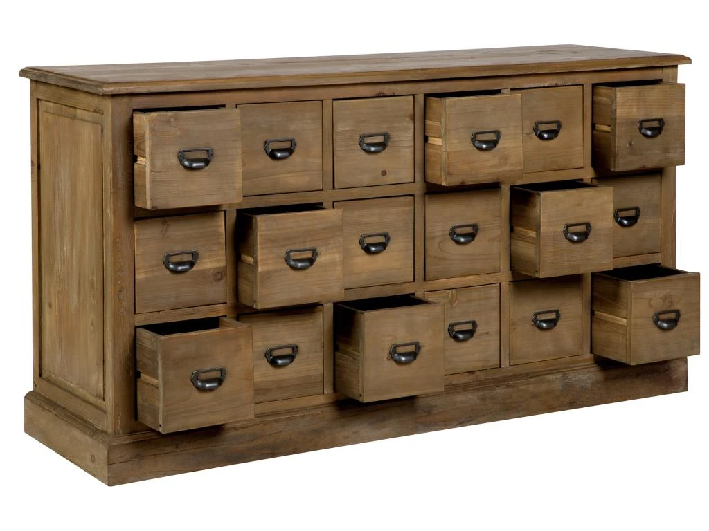 GrĂące Ă ses proportions harmonieuses L 160 x P 45 x H 85, notre buffet 18 tiroirs Miramas en bois s’intĂšgrera aussi bien Ă un hall d’entrĂ©e qu’Ă une piĂšce Ă vivre. Sa belle surface de pose vous permettra d’exposer des objets qui trouveront ainsi un bel Ă©crin.