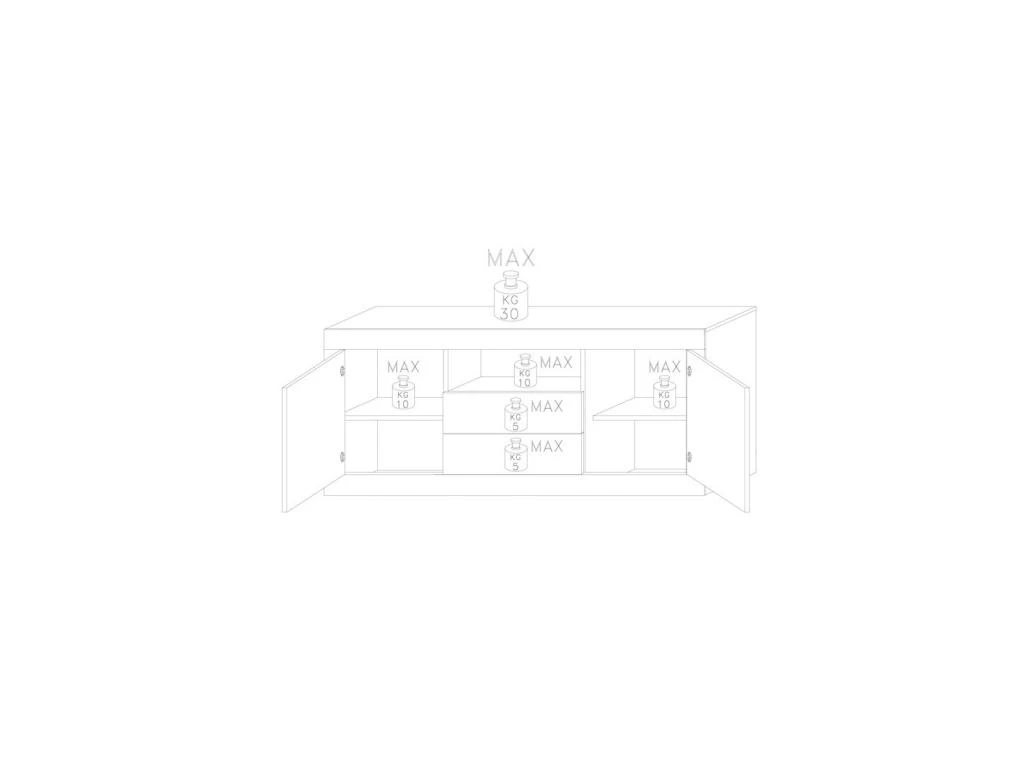 La qualité de réalisation de cette enfilade fabriquée en Italie assure une qualité perçue valorisante, les panneaux de forte épaisseur garantissent une stabilité satisfaisante et la quincaillerie prémium assure un fonctionnement fluide et silencieux.