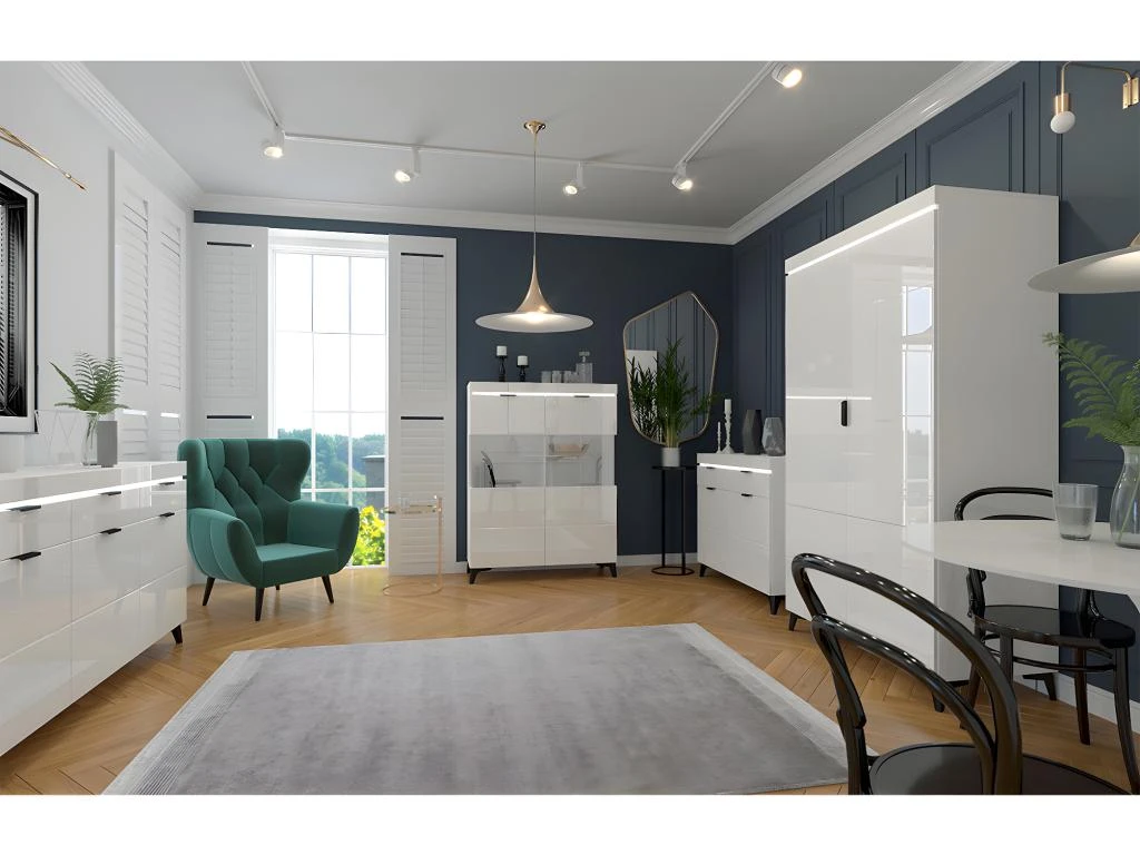 Couleurs : Façade blanc brillant – Corps blanc mat – Pieds et poignées noir mat