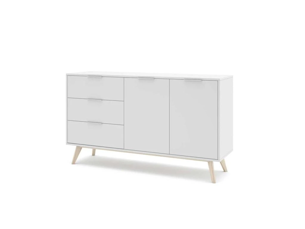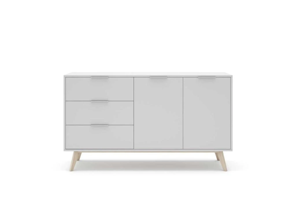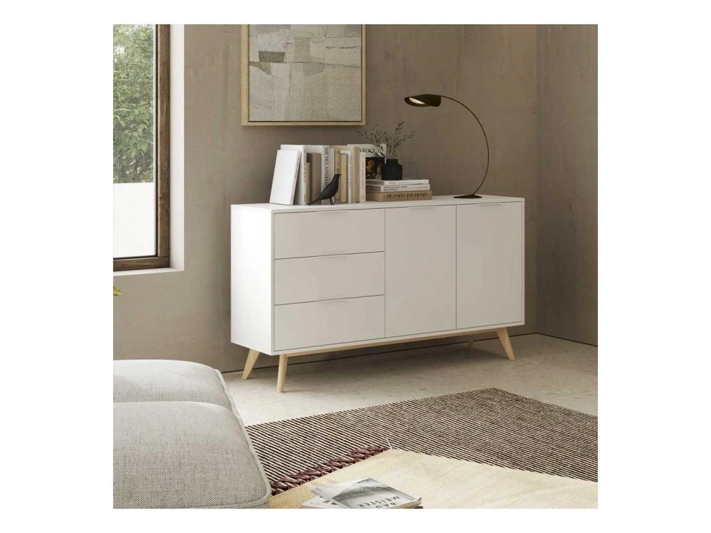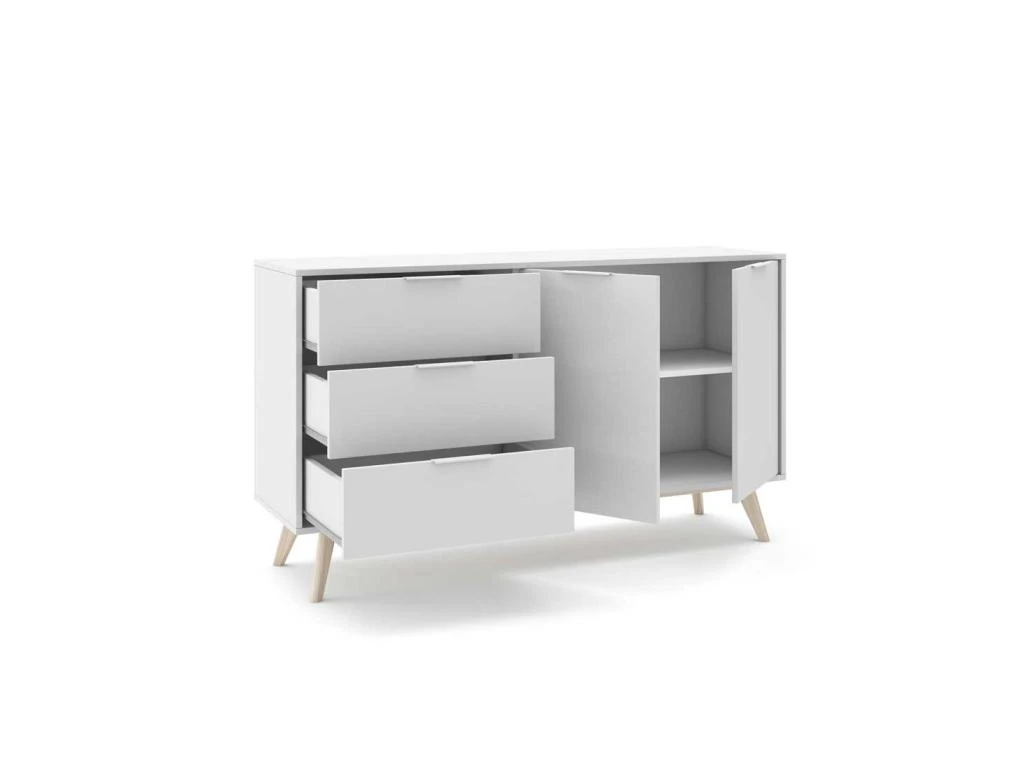Design indémodable et encombrement contenu pour ce buffet 2 portes 3 tiroirs et sa lumineuse teinte blanche.