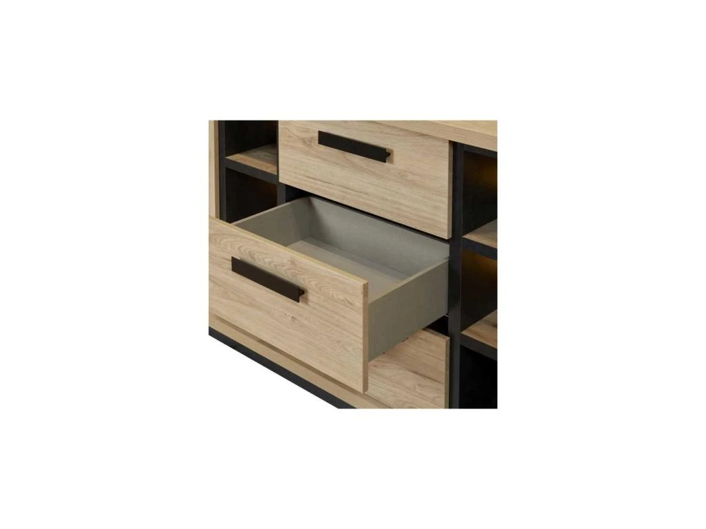 Très belle qualité de réalisation et design à la pointe de la tendance avec ce buffet 2 portes 3 tiroirs inspiré de la tendance mobilier Industriel.