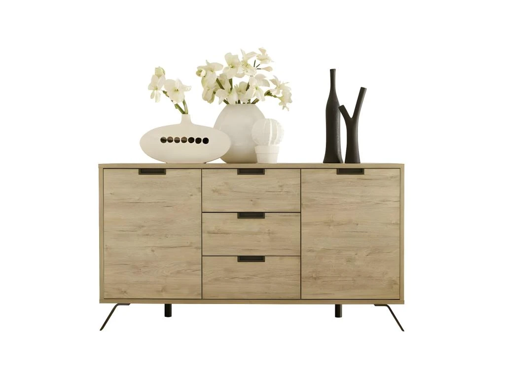 Preuve d’une robustesse sans ombrage et d’une qualité parfaite, cette enfilade fabriquée en Italie met en oeuvre des panneaux de plus de 20 millimètres certifiés FSC (éco-responsabilité garantie), le décor chêne clair est en mélamine pour une robustesse exceptionnelle.