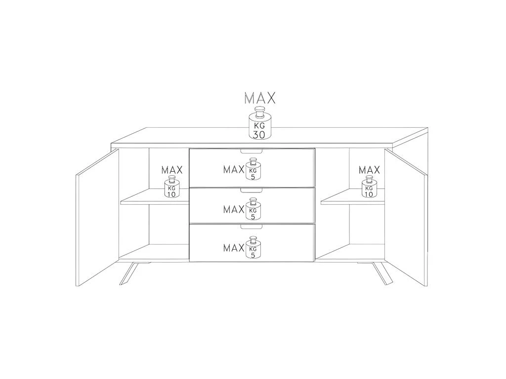 Tous les ouvrants se manipulent par la prise de main au design pur et au goût du jour, vous disposerez d’un espace de rangement muni d’une étagère derrière chacune des 2 portes, les 3 tiroirs permettront de ranger couverts, linge de table et divers ustensiles.