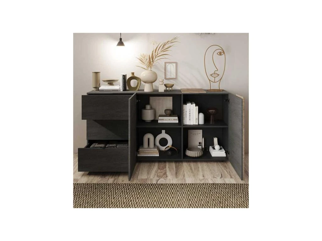 Mettez en scène une déco originale et intemporelle dans votre salle à manger avec ce buffet 2 portes 3 tiroirs au design exclusif.