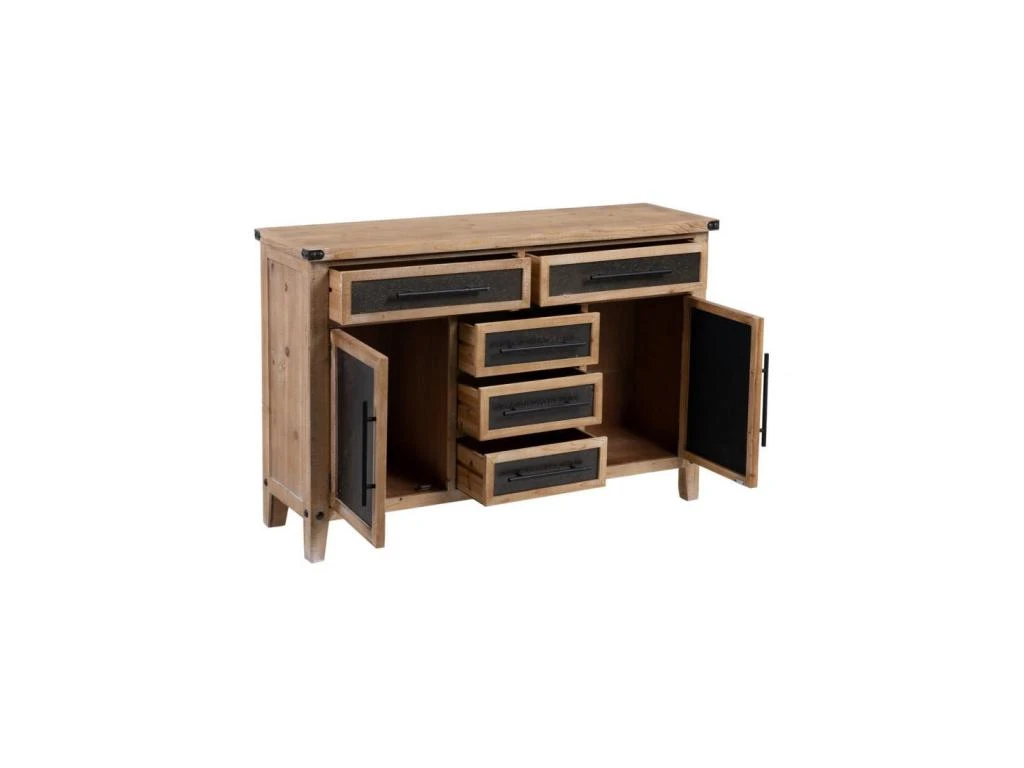 Look indémodable et beauté du bois pour ce buffet 2 portes 5 tiroirs apte à prendre place dans une salle à manger style mobilier Industriel.