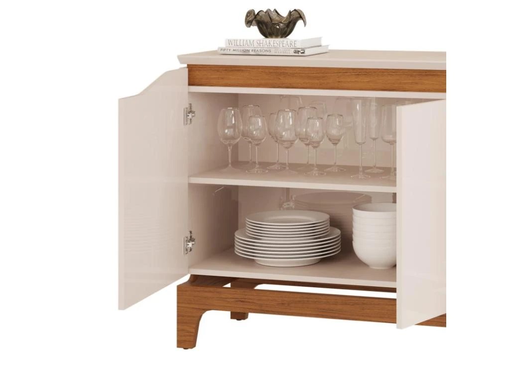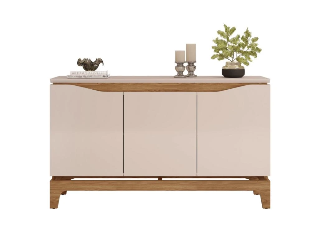 Buffet 3 Portes NICE Coloris Blanc Ecru + Imitation Chêne