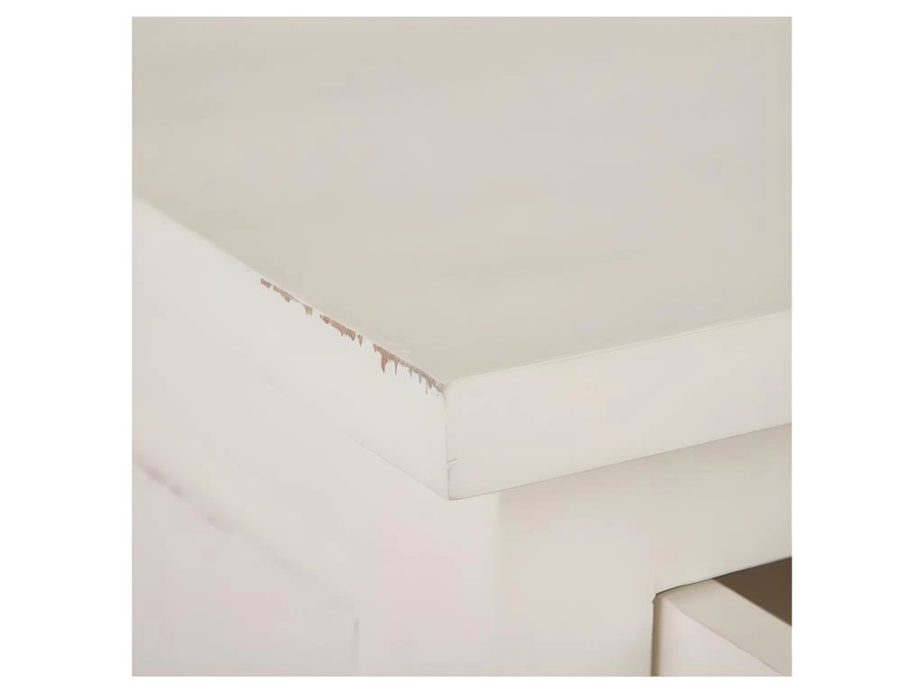 Mettant en oeuvre du bois de Mindi ce meuble de rangement bénéficie d’une robustesse satisfaisante et d’une qualité perçue valorisante, revêtu d’une laque blanc cassé il propose aussi un léger vieillisement qui lui apporte authenticité et unicité.