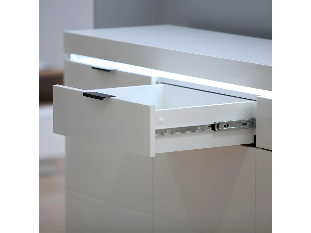 Portes avec système de fermeture silencieux – Glissières de tiroir à extension totale – Bande LED lumière blanc froid Inclus – LED à brancher sur prise secteur avec un bouton allumer / éteindre
