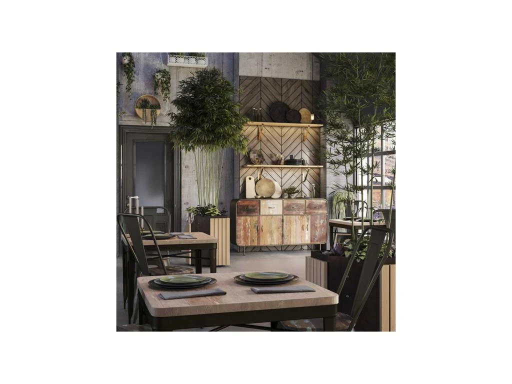 Matériaux tendance nature et style mobilier Industriel pour ce buffet 4 portes 4 tiroirs au rendu authentique.