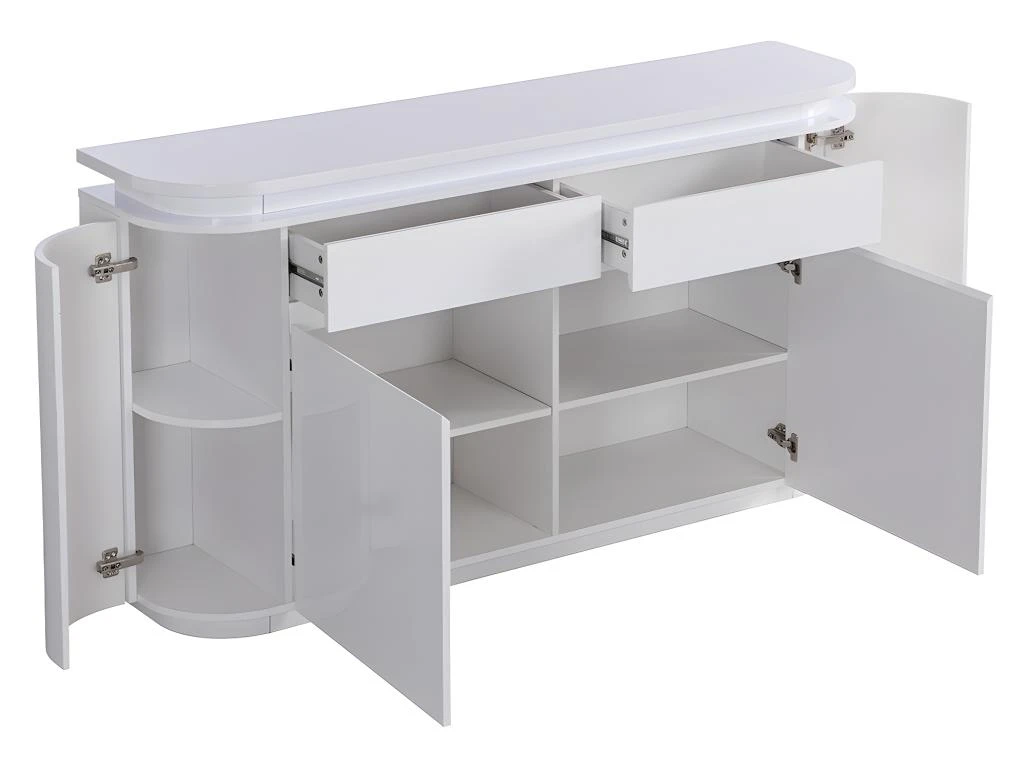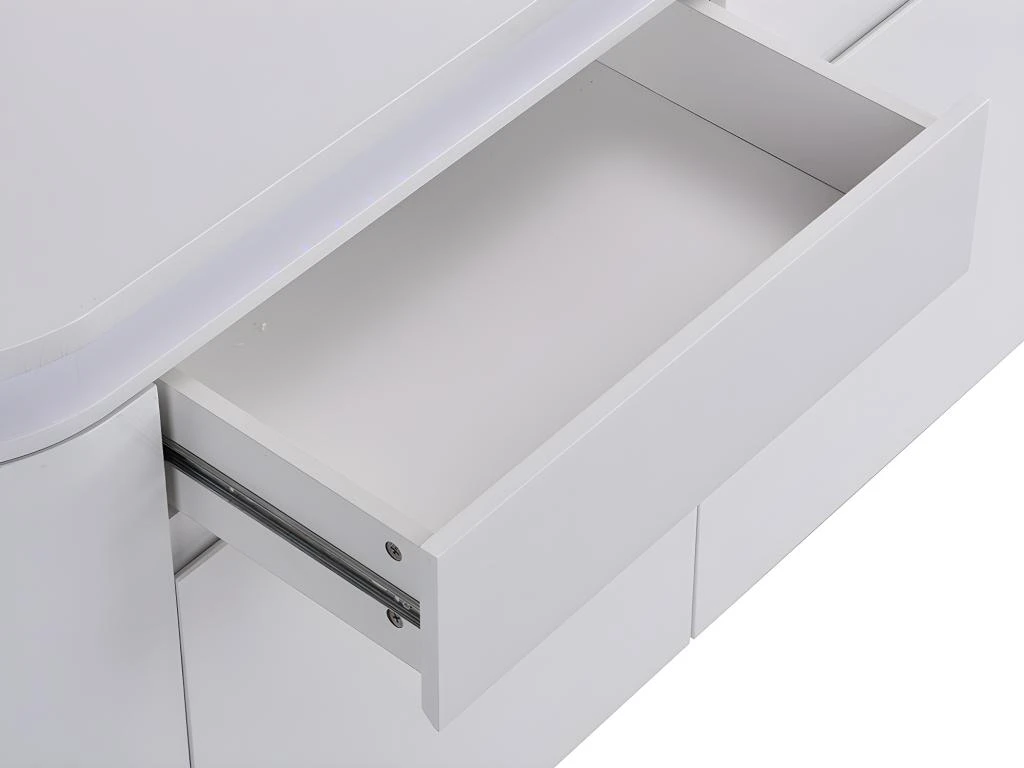 Avec ses multiples rangements est ses LEDs intégrées multicolores, la collection VANDANA vous fera profiter d’une optimisation de l’espace et apportera de la lumière à votre pièce. Son design très tendance, ses lignes epurées et sa facade en MDF laqué blanc donneront un coup d’éclat à votre intérieur !
