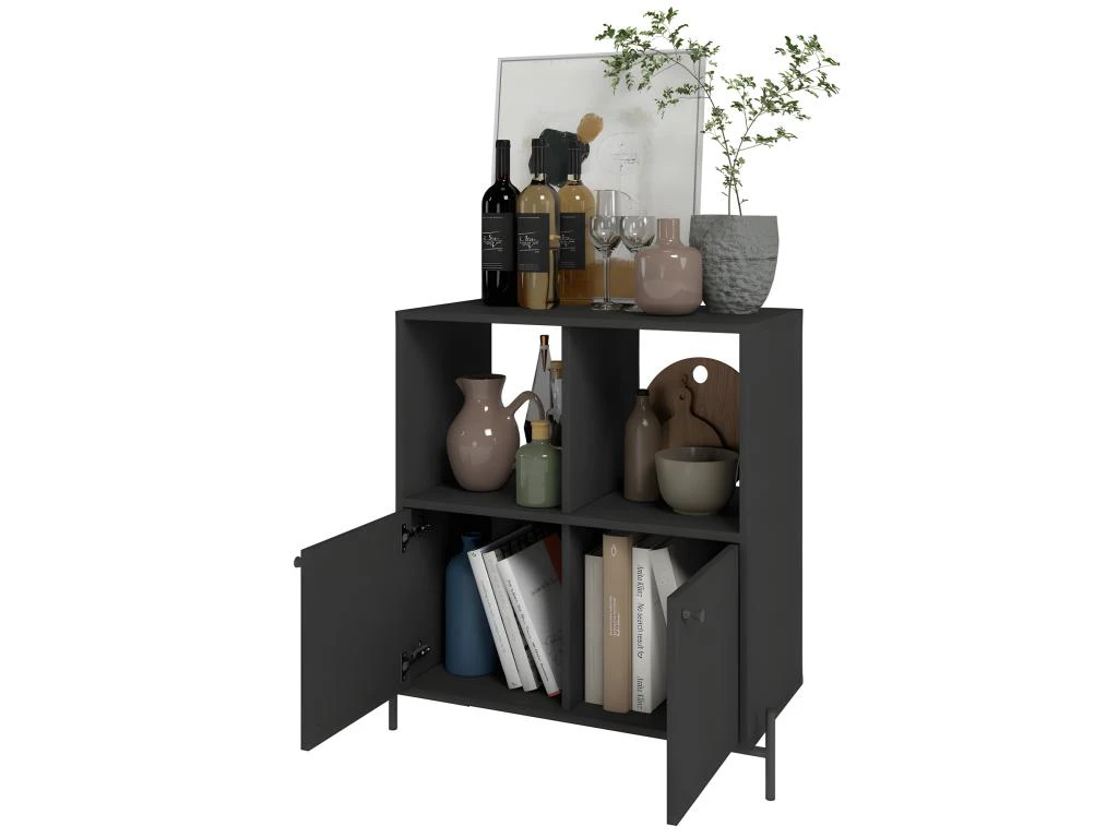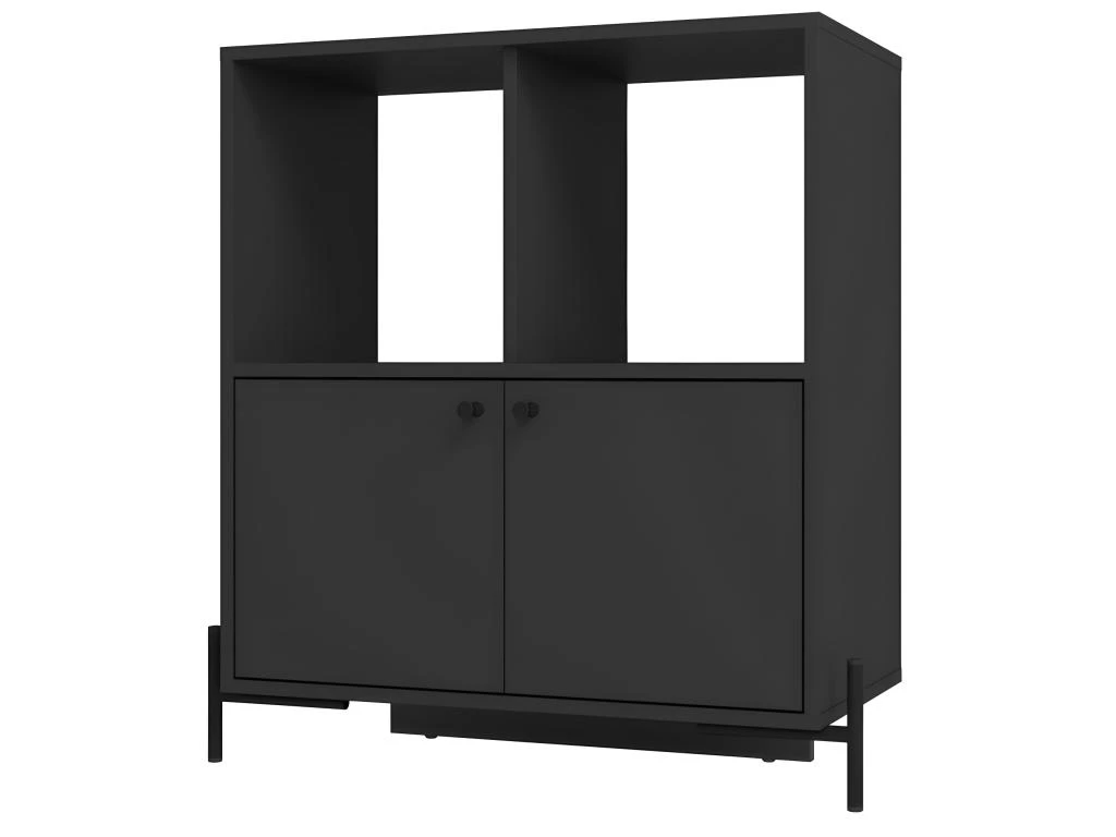 Buffet Armoirette 2 Portes 4 Niches Noir L 75 cm sur PIeds Métal Ronds PEN