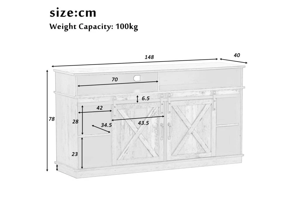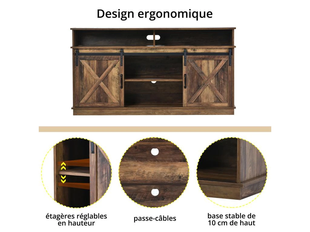 Style industriel rustique : ce buffet a un look unique et minimaliste avec un grain de bois naturel et un design épuré. La conception de la porte de grange à l’avant des armoires crée une ambiance rustique. Il complète d’autres meubles et est parfait dans votre salon, chambre, bureau. Le buffet sert également de meuble TV, pouvant contenir jusqu’à 65 pouces de téléviseur, des cadres photo, des plantes et plus encore sur une table spacieuse.