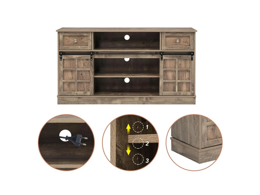 Rangement polyvalent : ce meuble TV dispose d’un total de 9 compartiments de rangement réglables en hauteur (dont 2 tiroirs), offrant suffisamment d’espace pour vos collections et équipements.