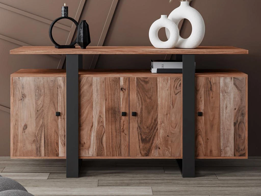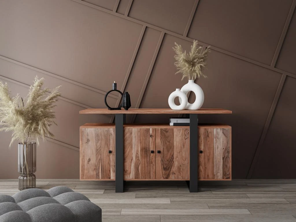 La collection ADIXIA s’accordera parfaitement avec votre intérieur. La combinaison de la couleur chêne avec le métal noir donnera du cachet à votre séjour tout en lui apportant un aspect naturel. Le buffet ADIXIA est idéal pour votre pièce grâce à ses rangements derrière ses 4 portes et son étagère, permettant ainsi d’aérer votre espace.