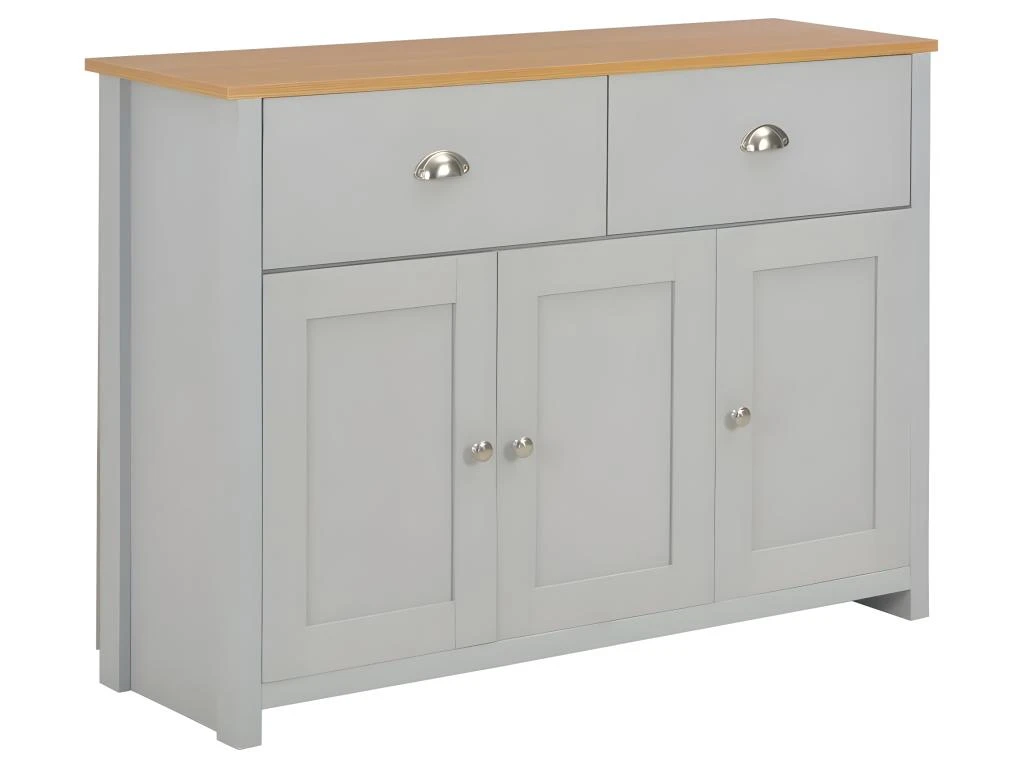 Le buffet est fait d’agglomĂ©rĂ© avec mĂ©laminĂ© et est extrĂȘmement stable et durable.