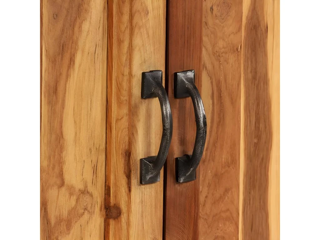 L’armoire latérale est faite de teck recyclé qui a reçu une belle finition par polissage et laquage, pour lui donner un aspect raffiné.