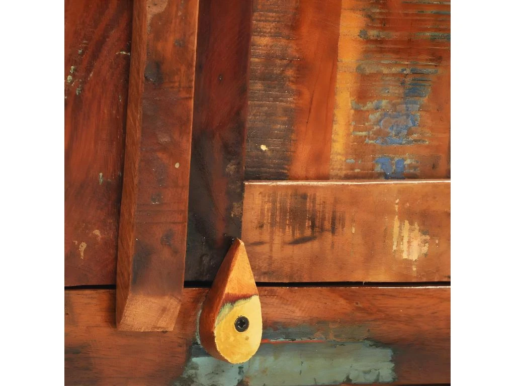 Ce meuble de rangement est fait de bois de récupération, ce qui signifie que chaque meuble est unique et légèrement différent l’un de l’autre.