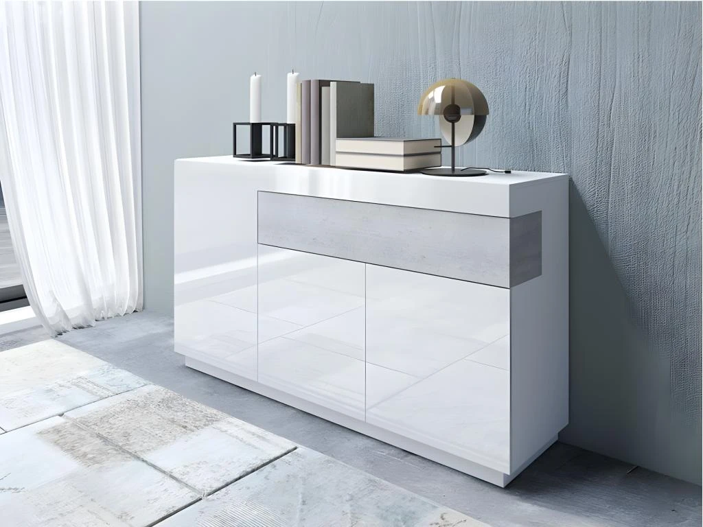 Offrez à votre salon un style unique au top des dernières tendances déco grâce à ce buffet de la gamme KILES ! Ce buffet est composé de nombreux rangements à savoir : trois portes et un grand tiroir.