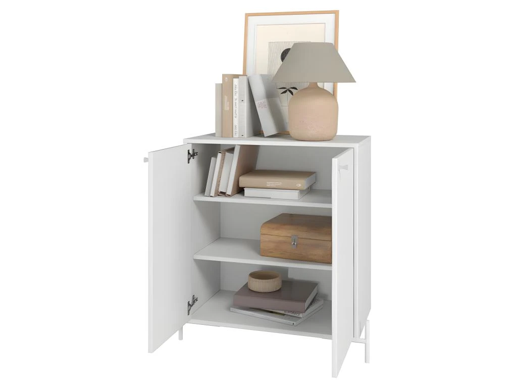 Buffet – Meuble de Rangement Multifonctions 2 Portes sur Pieds Métaliques Ronds Coloris Blanc