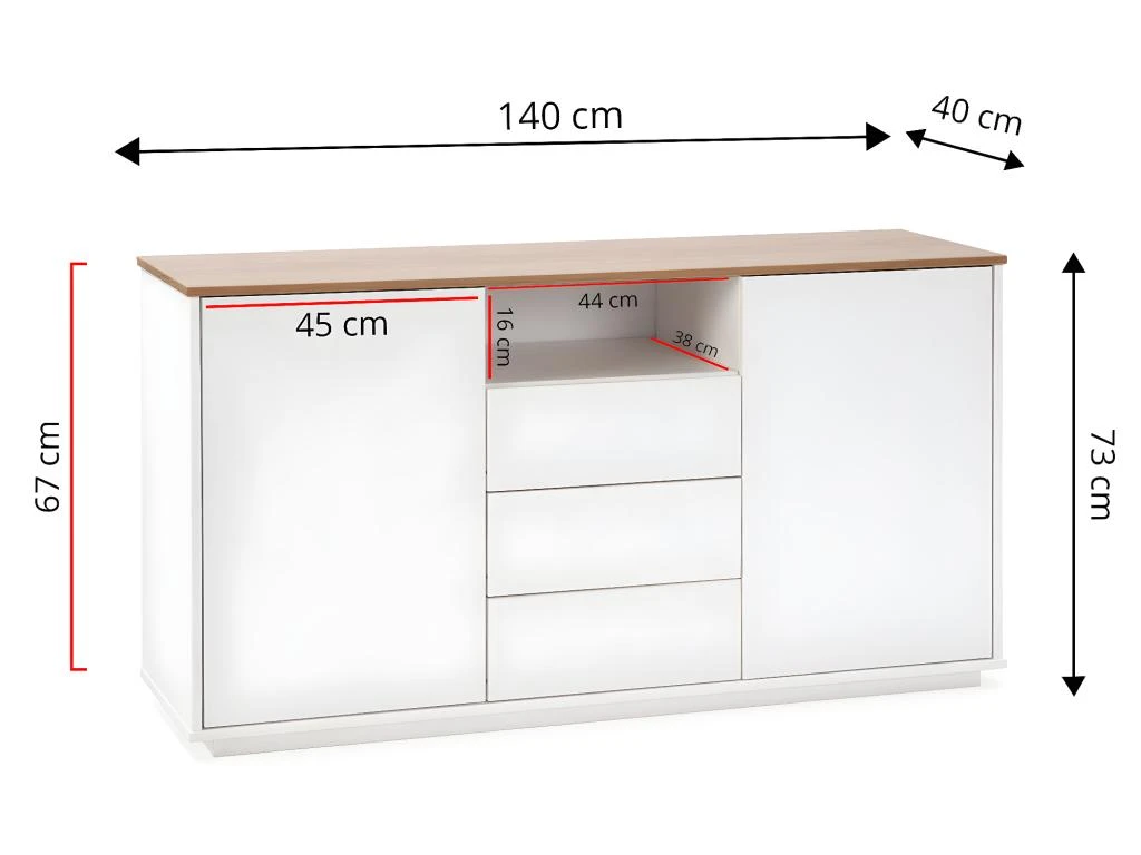 · Le buffet Bob est composé de 2 portes, 3 tiroirs et un trou. La composition parfaite pour organiser tout ce dont vous avez besoin pour ranger dans ce meuble et, ainsi, laisser tout accessible et bien rangé dans la salle à manger. Les tiroirs ont des guides métalliques qui facilitent leur ouverture et leur fermeture.