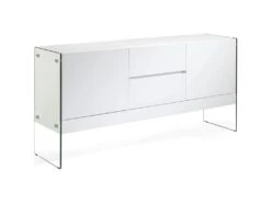 Matière : structure et étagères intérieures : dm laqué, côtés : verre transparent de 12 mm avec procédé de trempe thermique à 635 degrés et bords polis ,