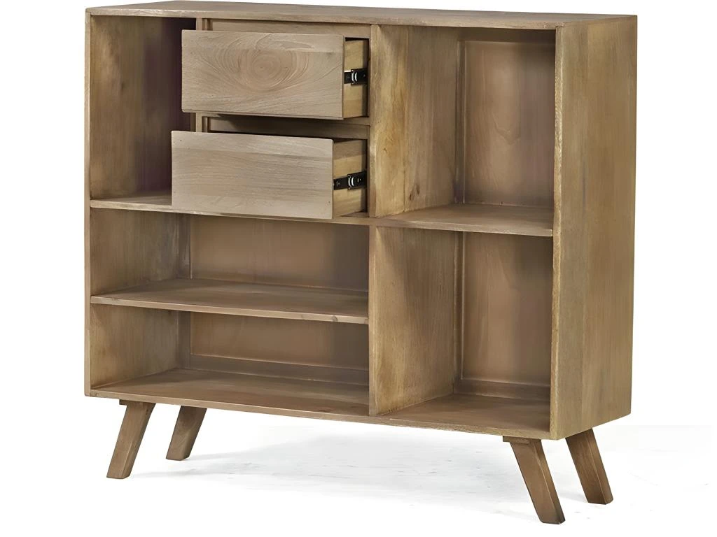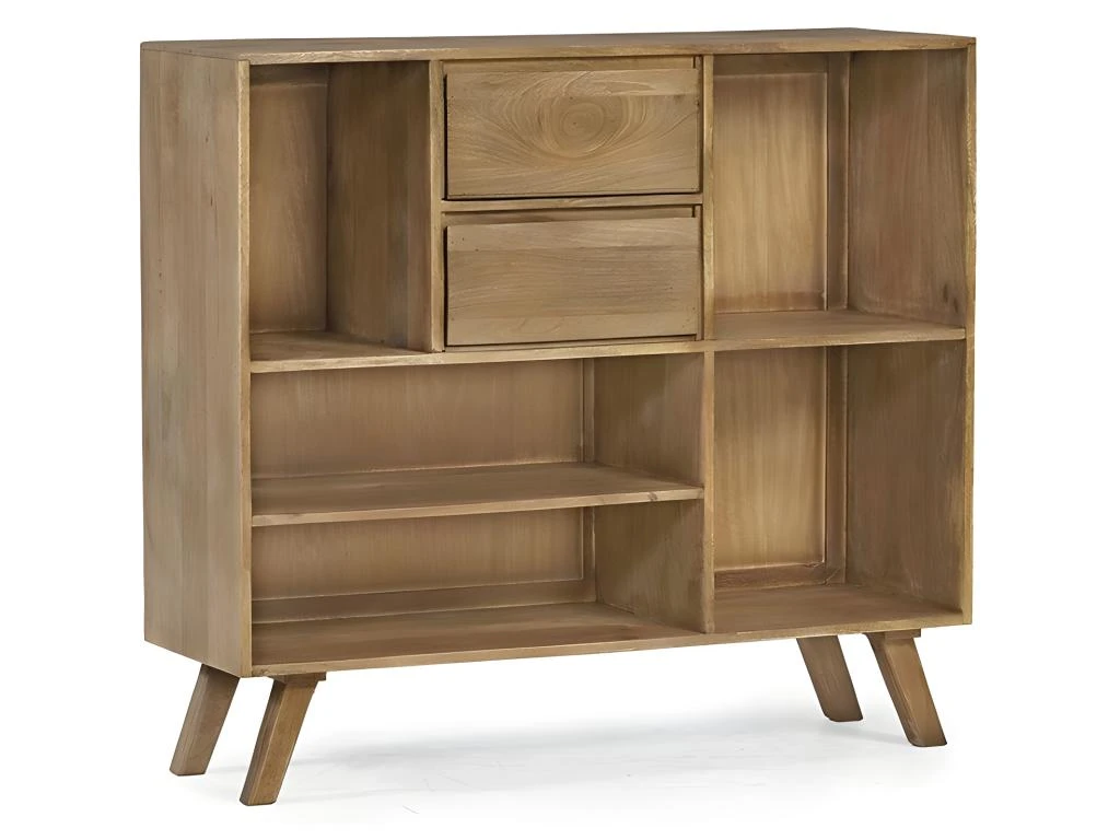Succombez au charme du bois brut avec ce buffet ouvert Classic composé de 2 tiroirs et 5 niches de diverses tailles. Idéal pour sublimer la décoration de votre intérieur, vous pourrez disposer tant des livres ou autres objets déco. Ses deux tiroirs montés sur coulisses métal disposent d’un système d’ouverture sans poignée pour un effet plus épuré. Entièrement fabriqué en bois de haute qualité. Livré monté. Dimensions : L. 120 x l. 40 x H. 110 cm. Poids : 46,9 kg. Matière : Bois de manguier.