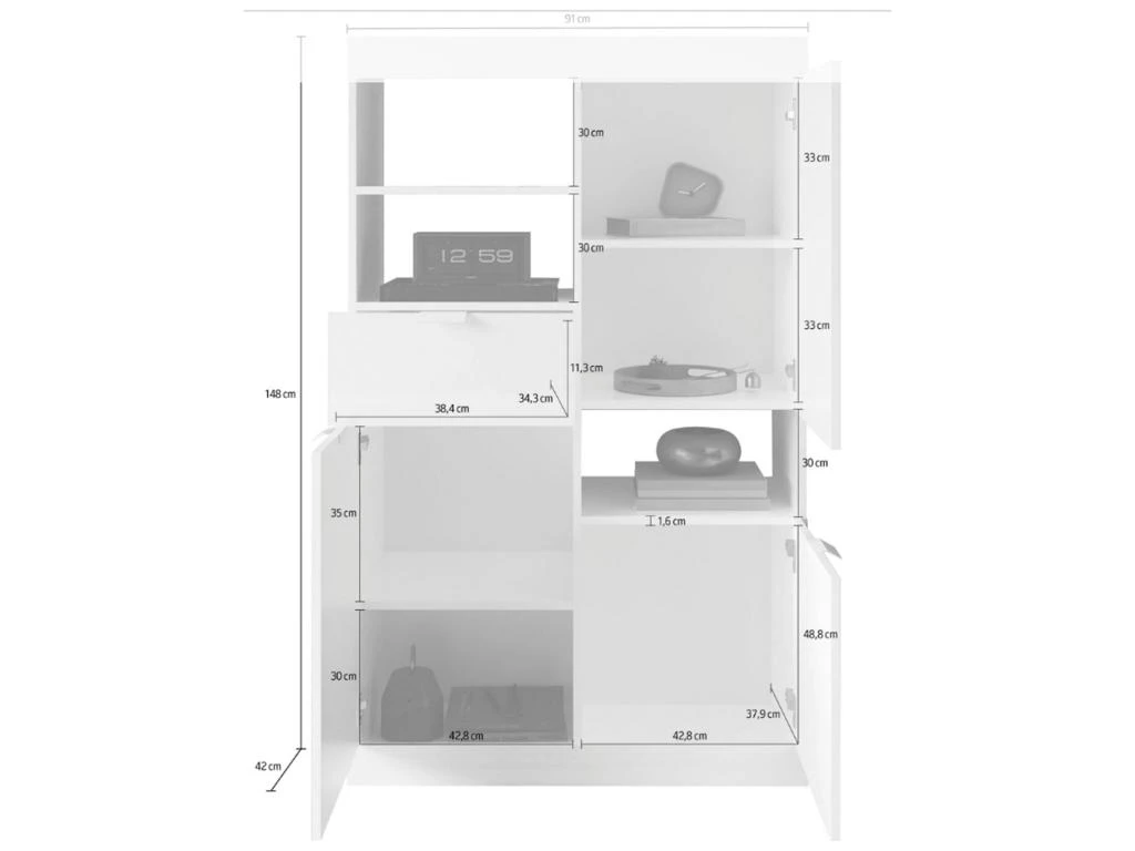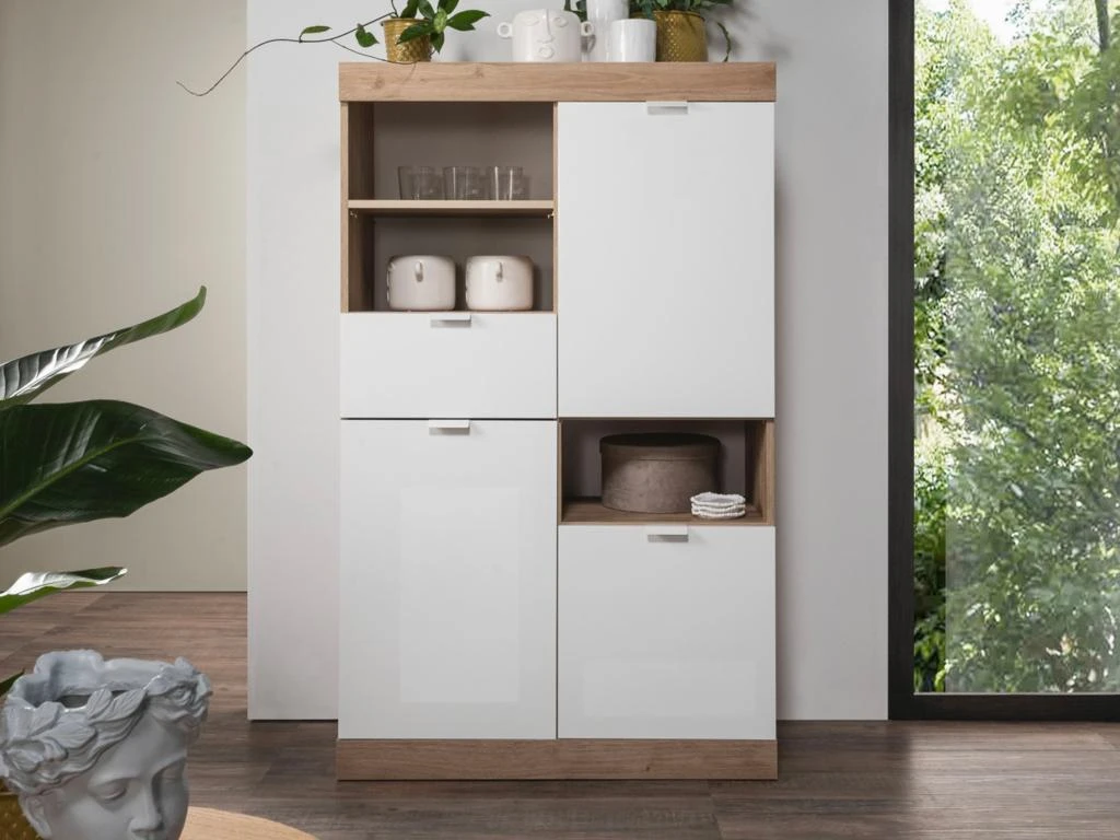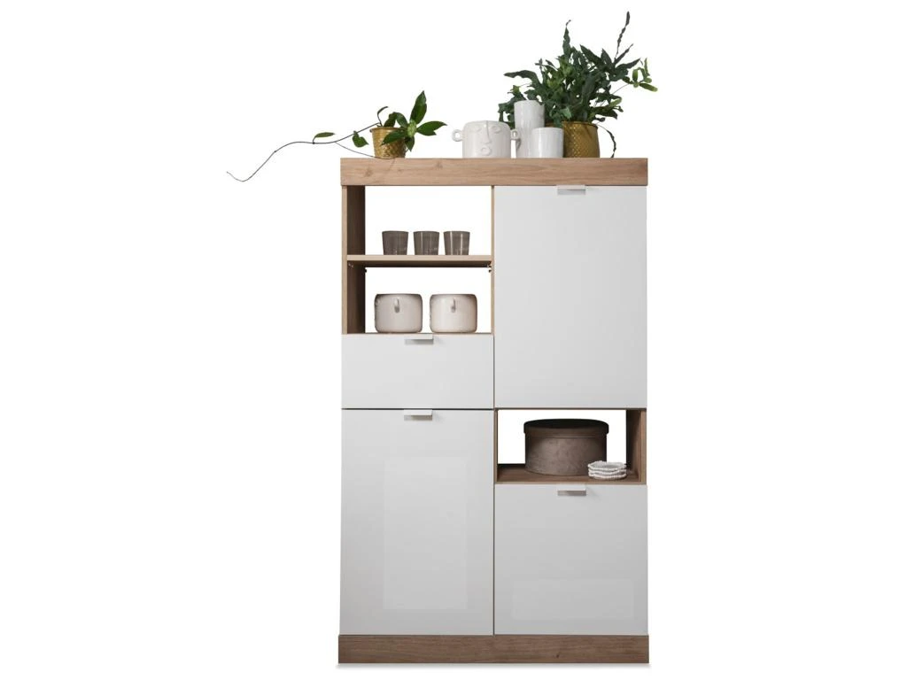 La collection EVOLIA propose un alliage de coloris très tendance : du blanc laqué ainsi que du naturel mélaminé. De plus, le design de cette collection est pensé de manière à vous offrir de nombreuses possibilité de rangement.