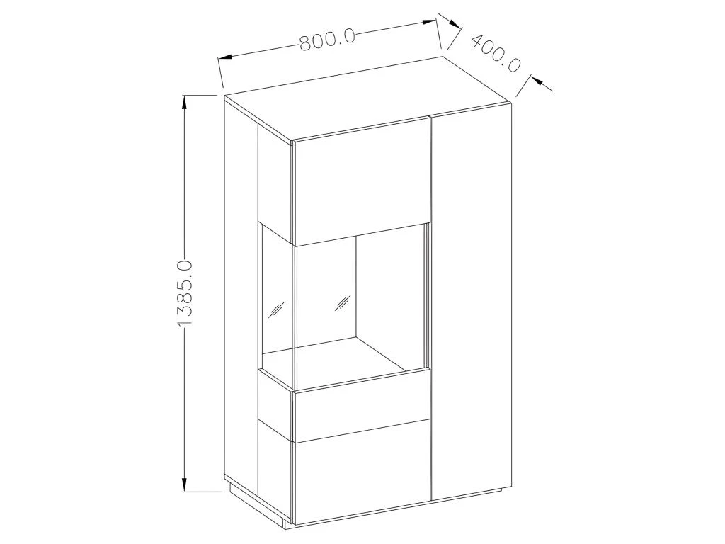 – MODÈLE : Buffet haut 2 porte KILES. Modèle porte vitrée à droite.