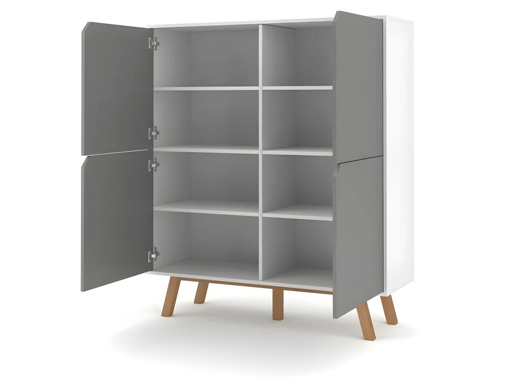 – COLORIS : Corps blanc mat et façades gris mat. Pieds en hêtre.