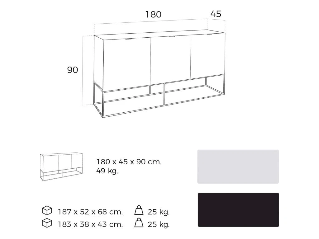 Matière : structure et étagères intérieures : dm laqué, pied et poignée : acier inoxydable peint époxy ,