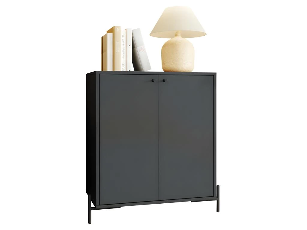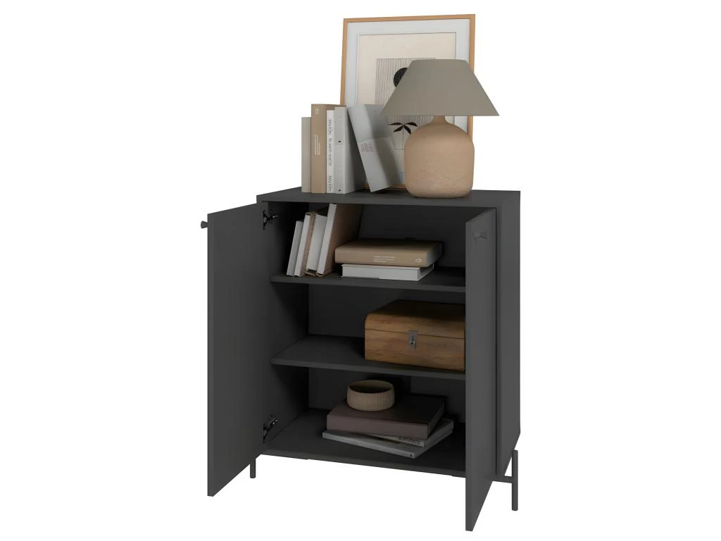 Buffet – Meuble de Rangement Multifonctions 2 Portes sur Pieds Métaliques Ronds Coloris Noir