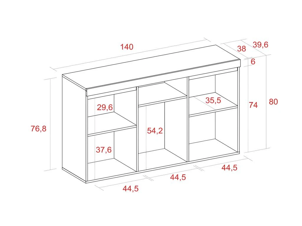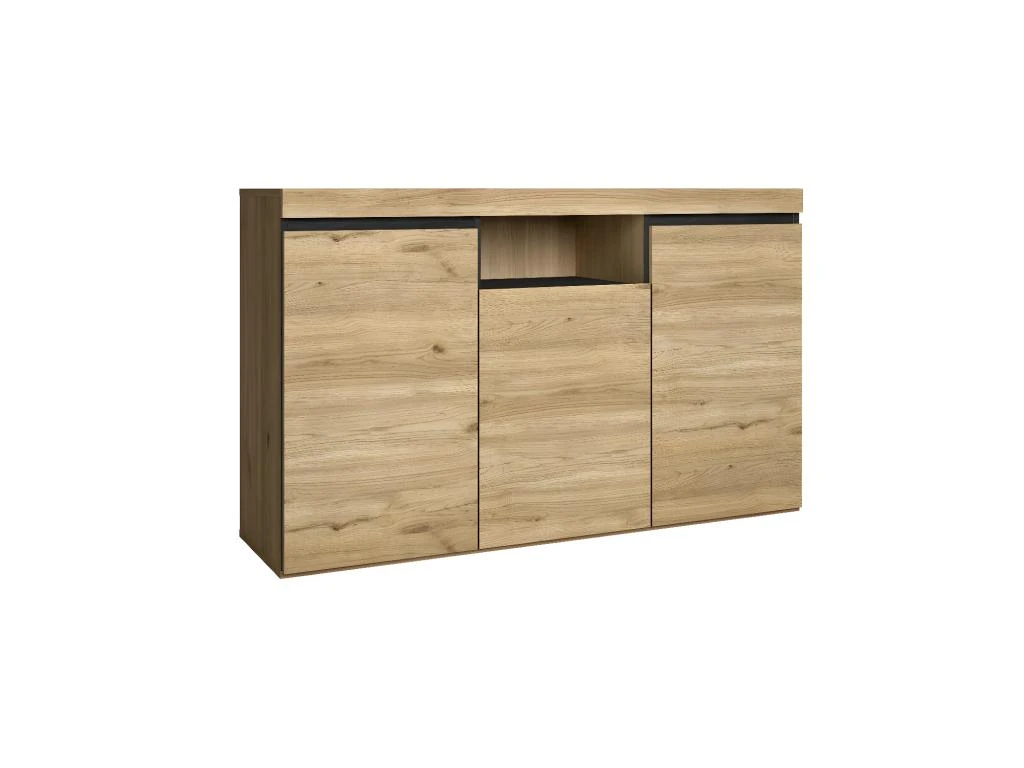 Etonnant meuble buffet en couleur « Chene/Noir ». Ce mobilier de style nordique est ideal si vous souhaitez ajouter une touche de fraîcheur et d’innovation a votre salon ou a votre salle a manger. De plus, avec ce buffet, vous pourrez egalement ajouter des espaces de rangement, car il dispose d’un compartiment superieur central et de trois placards dans lesquels vous pourrez ranger votre vaisselle, vos couverts ou tout autre objet que vous ne savez pas où ranger. Le buffet « »Naturale » » apportera rangement et design a votre salon ou a votre salle a manger ! Magnifique buffet fabrique en melamine de haute qualite. Dans ce meuble, vous pourrez non seulement ranger des objets dans sa niche et dans ses placards, mais vous pourrez egalement utiliser sa surface pour placer des livres ou des decorations avec lesquels vous pourrez lui donner votre touche personnelle. Ce buffet est un meuble design de qualite a un bon prix. Le reste du mobilier et les objets decoratifs presents dans les images ne sont pas inclus. Mesures : Hauteur 80’5 cm Largeur 140’1 cm Profondeur 39’6 cm. Il s’agit d’un meuble avec un kit de montage, qui comprend un manuel d’instructions et des vis.