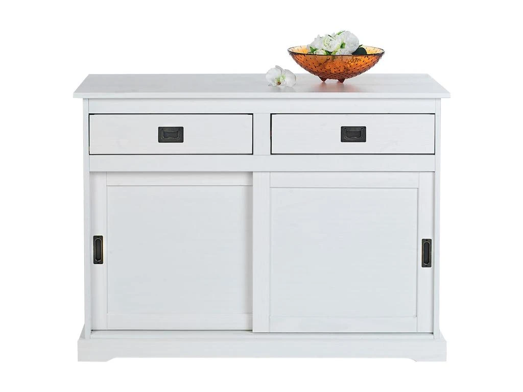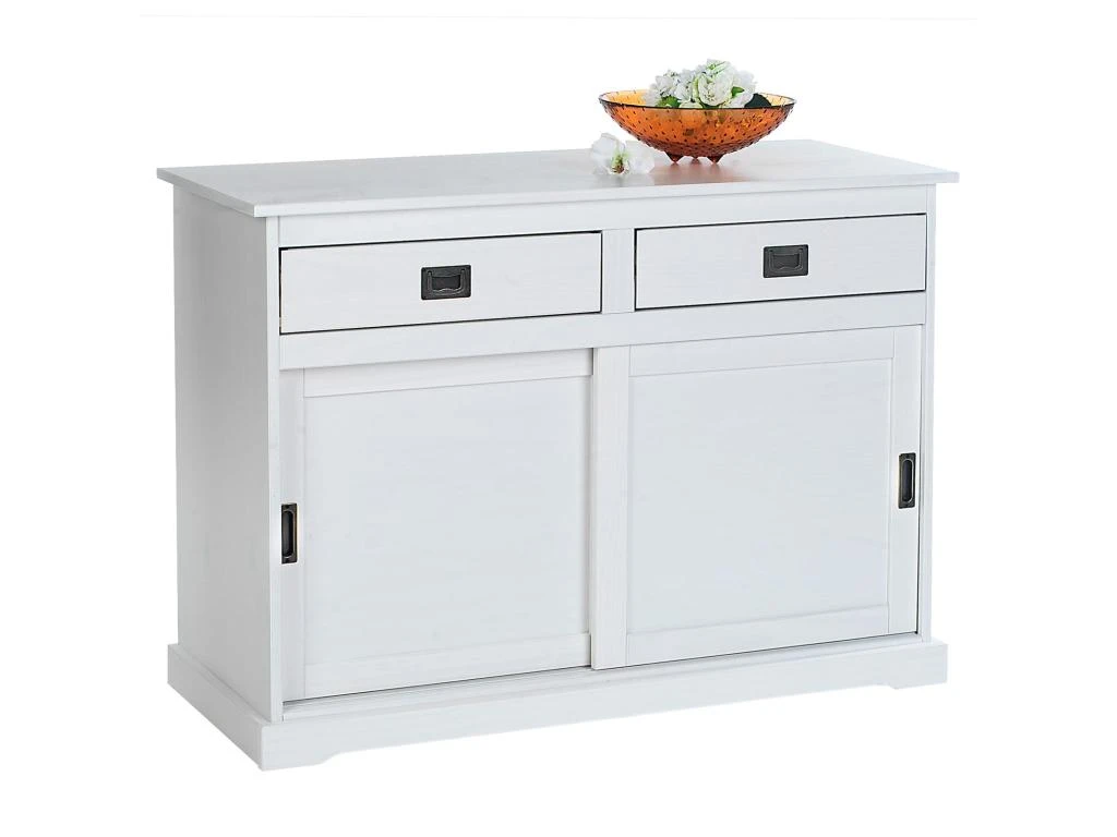 – Le buffet est fabriqué en pin massif et lasuré blanc.