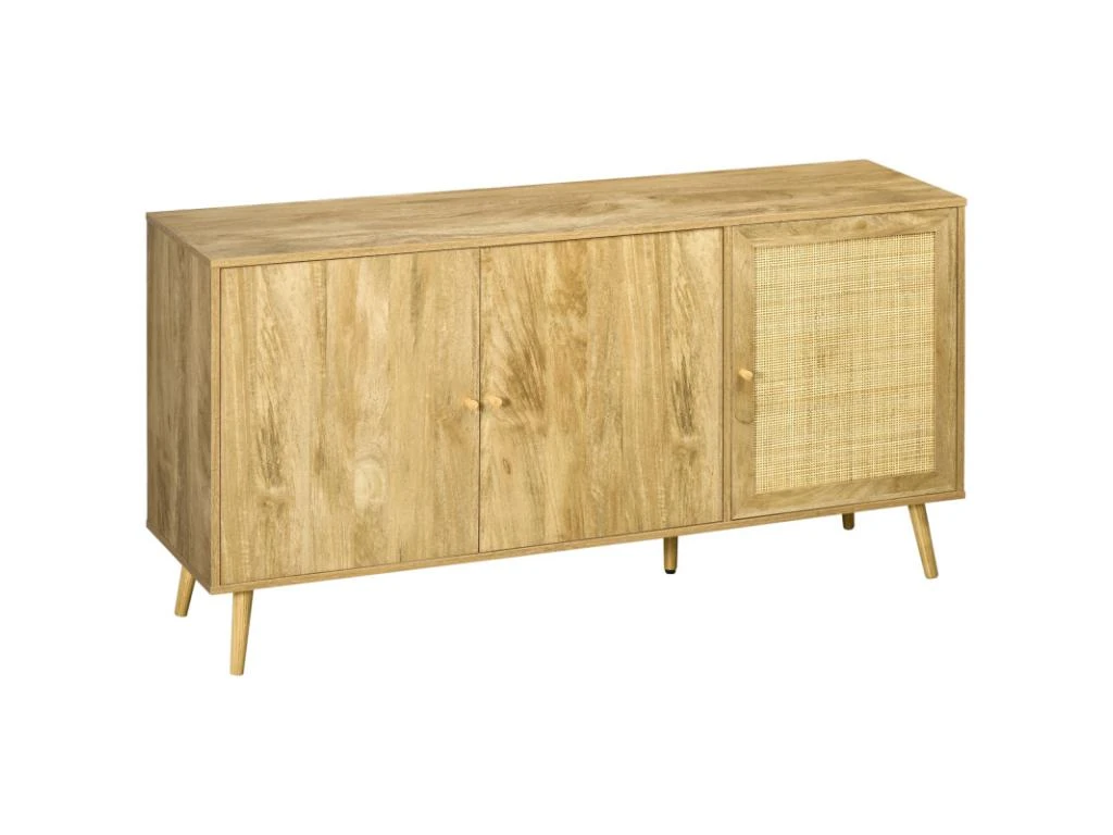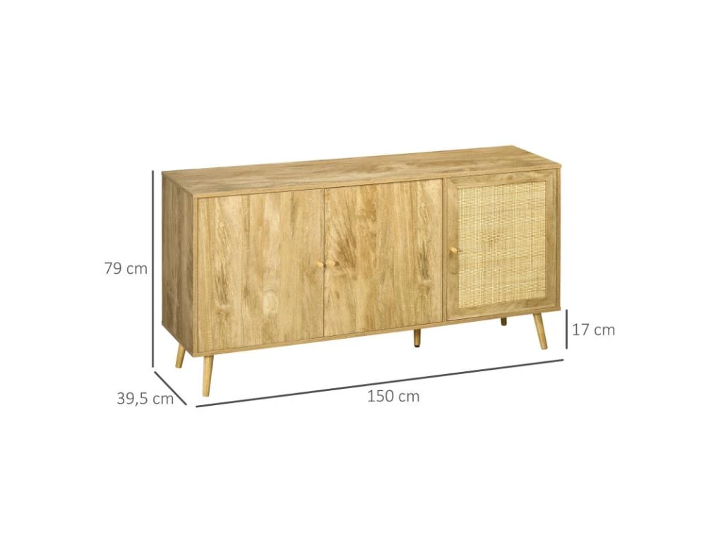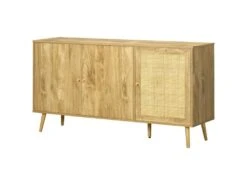 – Grand buffet style bohème 3 portes avec cannage en rotin et aspect bois clair veinage apportant charme et élégance à votre intérieur