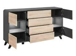 Buffet, Bahut, Enfilade TONGA 4 Tiroirs, Une Porte. Look Ultra Design. Couleur Wengé. LEDS Incluses