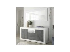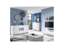 Buffet 180cm Collection BREDA Deux Portes Partiellement Vitrées Et Trois Tiroirs. Coloris Blanc.
