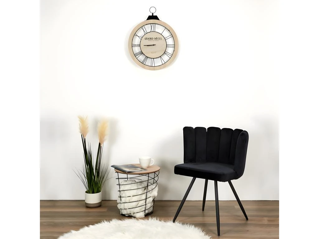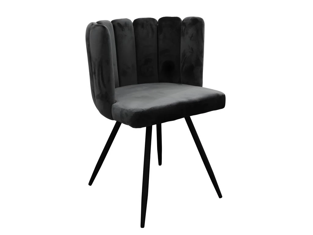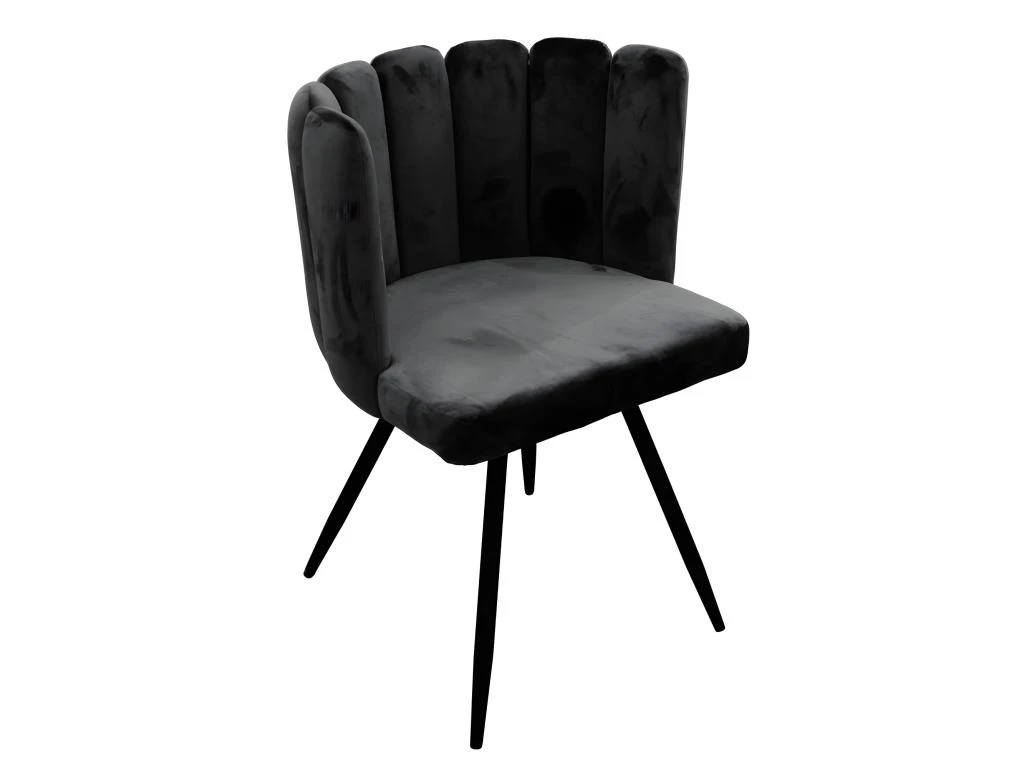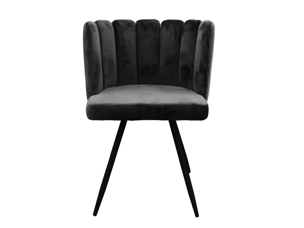 Craquez pour le style de cette chaise en velours coloris noir. Son assise au design coquillage saura vous sĂ©duire et apportera beaucoup de confort. Pieds en mĂ©tal Ă monter soi mĂŞme. Dimensions : L52,5 x l50,5 x H79,7 cm. Hauteur assise : 49,6 cm. Poids : 6,3 kg. Matière : Polyester et mĂ©tal. Â