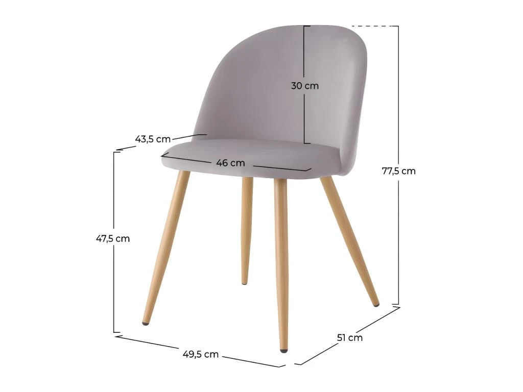 Rehaussée par des pieds en métal effet bois, notre chaise Cozy en velours gris (lot de 2) vous ravira aussi par son ergonomie. Vous apprécierez le soutien de son dossier H 30 cm aux bordures légèrement enveloppantes et la qualité de son assise.