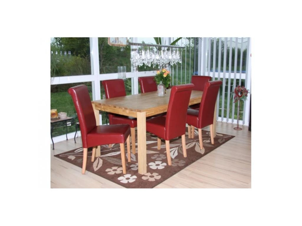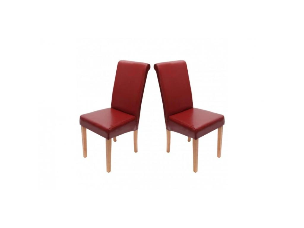 Chaise contemporaine pour salle à manger, très confortable et robuste recouverte de Similicuir, dossier et cotés en polyuréthane. Piètement bois coloris clairs.