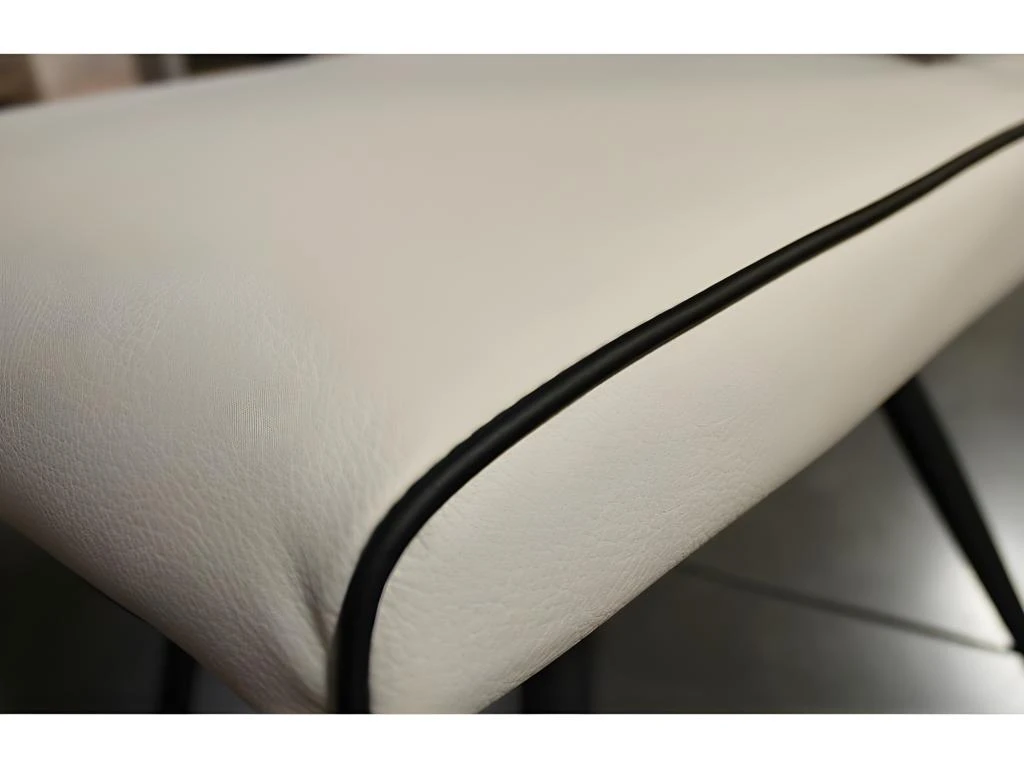 - COMPOSITION : Garnissage en mousse polyuréthane. Revêtement 100% polyuréthane avec coutures et galons noirs. Piètement filaire en acier époxy noir.
