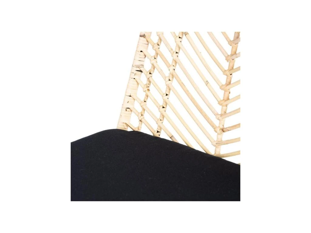 La structure en métal soutient efficacement une coque réalisée en rotin teinte naturelle pour un design intemporel et une légèreté visuelle du plus bel effet.