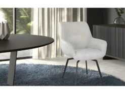 Chaise MERIL PU Blanc, Dimensions: H96 X L42 X P55 Cm, Idéal Pour Une Salle à Manger Tape-à-l’œil