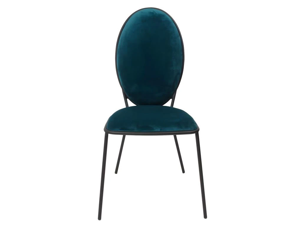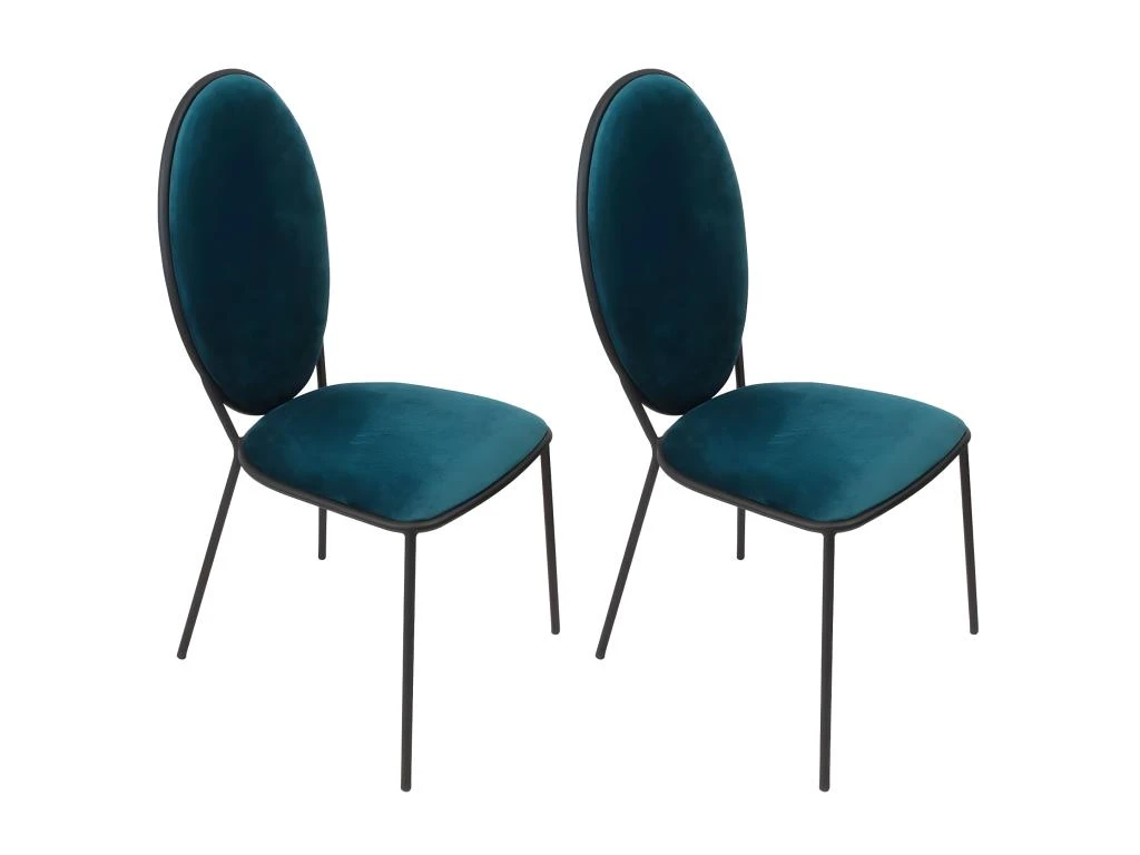Piétement métallique coloris noir. Revêtement dossier et assise velours coloris bleu. Hauteur d’assise : 47 cm