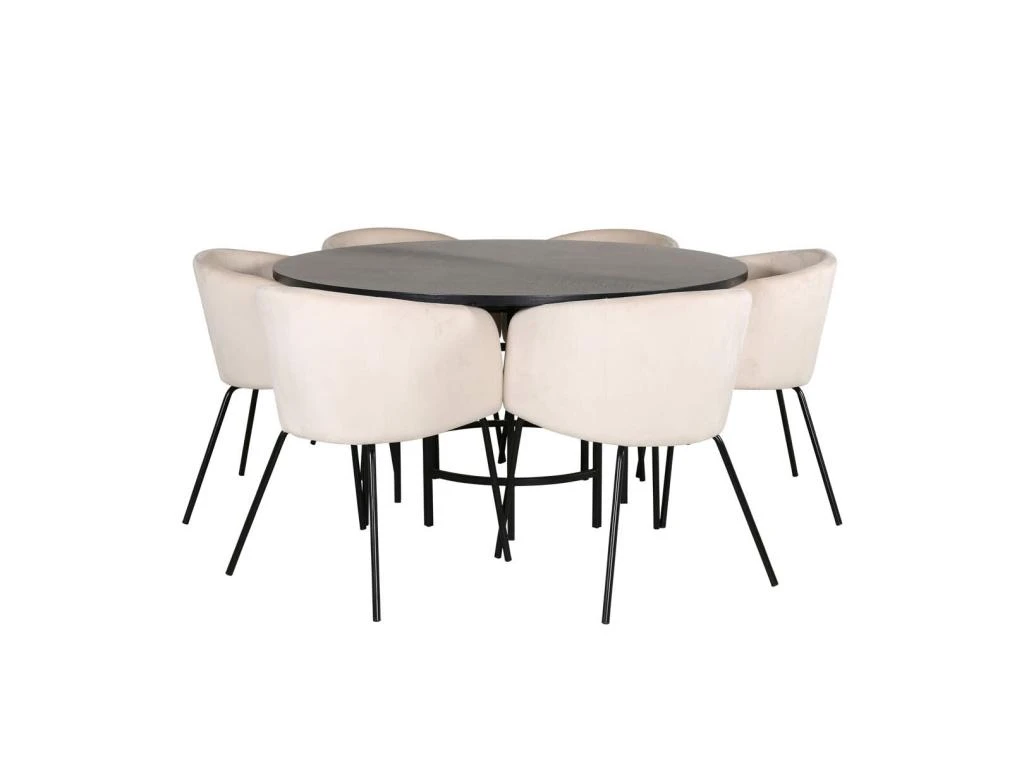 DippØ115BLBL Ensemble Table, Table Noir Et 4 Berit Chaises Velours Noir.